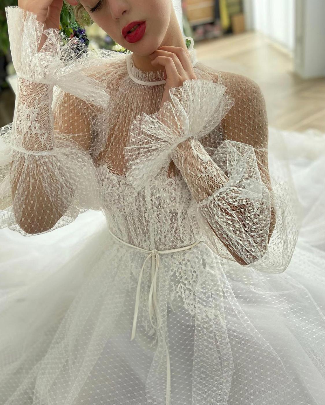 -A-line style with sheer sleeves